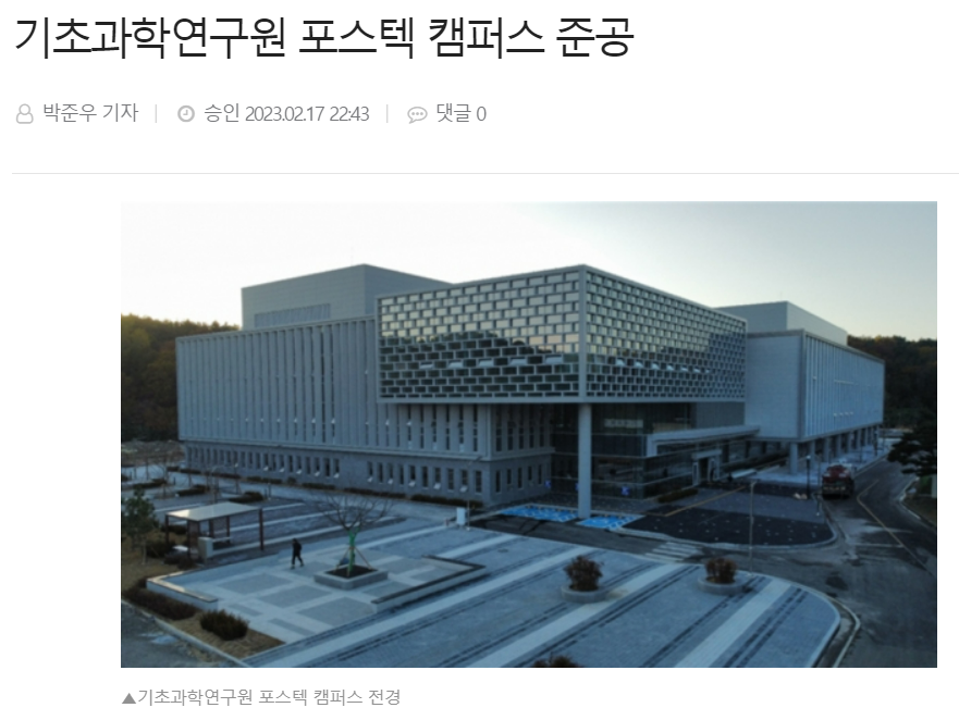 기초과학연구원 포스텍 캠퍼스 준공 - 포항공대신문