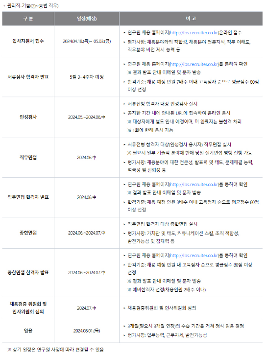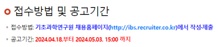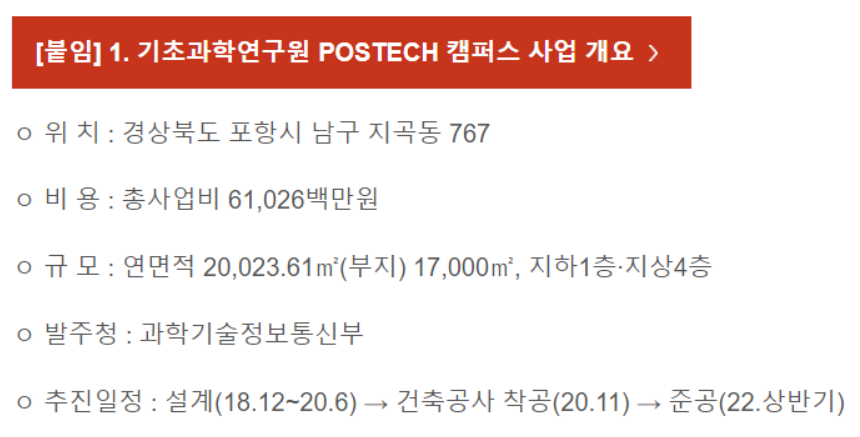 (1) 2023년 준공한 포항소재 기초과학연구원 포스텍캠퍼스에서 근무할 직원을 채용하는 공고임.