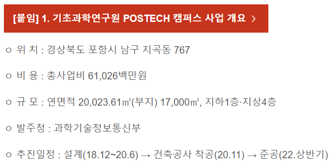 작년 10월 준공된 기초과학연구원(이하 IBS) 포스텍 캠퍼스의 준공검사가 지난달 3일 완료됐다. 이번 사업은 세계적 수준의 기초과학연구 수행을 위한 기반 마련을 목적으로 과학기술정보통신부