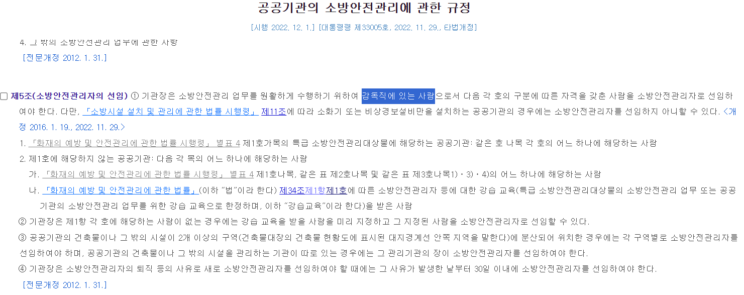 IBS는 공공기관 해제가 추후될지 모르겠으나 정부출연연구기관(출연연) 21곳은 이제 공공기관의 소방안전관리에 관한 규정을 적용받지 않게됨. 과거에는 공공기관이었기때문에 '감독직에 있는 사람'을 선임하였으나 이제는 그리하지 않아도 되어 신규 소방안전관리자를 뽑으려는 수요가 발생할 수 있음.