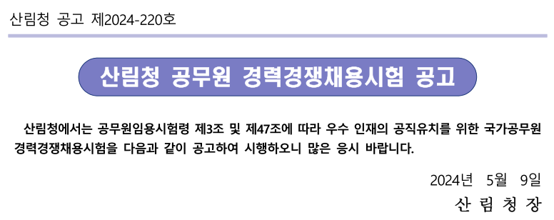 산림청 - 행정정보 > 알림정보 > 채용정보