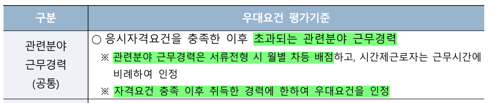 : 응시자격요건을 충족한 이후 초과되는 관련분야 근무경력