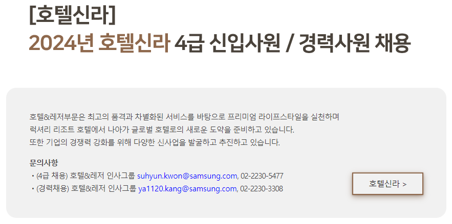 [(주)호텔신라] 2024년 호텔신라 4급 신입사원 / 경력사원 채용(D-2) - 사람인