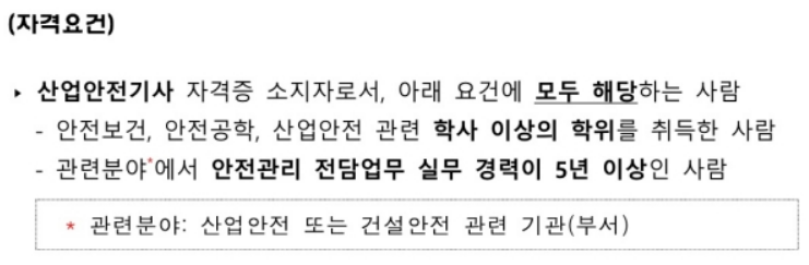 ‣ 산업안전기사 자격증 소지자로서, 아래 요건에 모두 해당하는 사람