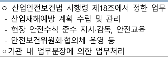 ㅇ 산업안전보건법 시행령 제18조에서 정한 업무