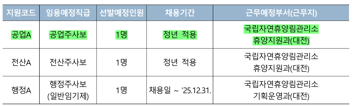 (1) 국립자연휴양림관리소(대전)에서 근무할 안전관리 담당 공업주사보를 뽑는 채용공고며 공업주사보는 7급에 해당됨.