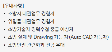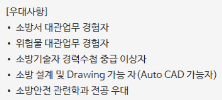 (3) 중소, 중견기업에서 소방/위험물 안전관리 업무(대관업무 포함)를 수행한 경력(5년)이 있다면 지원해보길 바람.