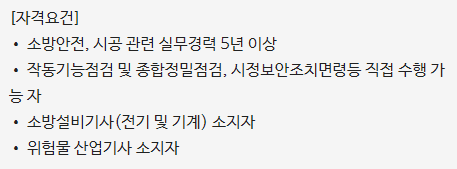 • 소방안전, 시공 관련 실무경력 5년 이상