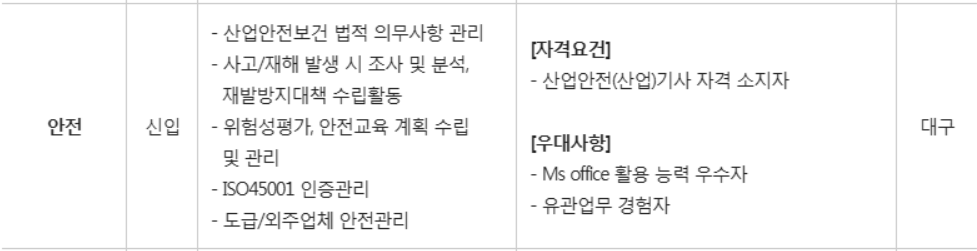 (2) 계속해서 안전/환경분야 신입, 경력사원을 채용하고 있었으며 이번 채용공고는 귀한 안전분야 신입사원 공고이므로 산업안전기사(또는 산업안전산업기사)만 보유하고 있다면 무조건 지원 ㄱㄱ