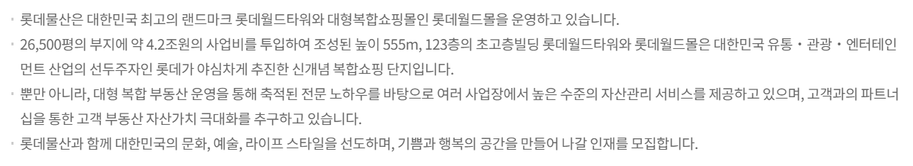 롯데물산 채용(신입, 안전환경)