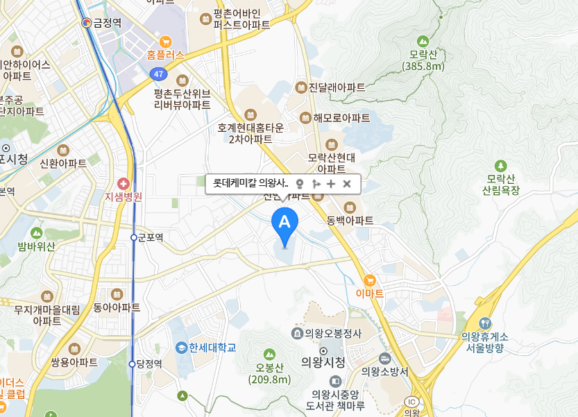 주소 - 롯데케미칼 의왕사업장(의왕시 고산로 56)