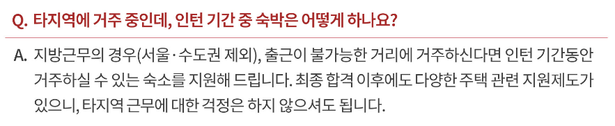 (3) 인턴 기간 중에도 1인 1실은 아니겠지만 숙소의 제공 가능함.