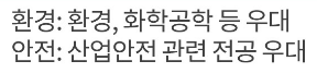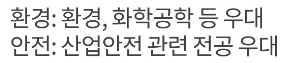 (2) 별도의 기사 자격은 요구하지 않으나 아래 전공 외 산업안전기사, 산업위생관리기사, 대기환경기사, 수질환경기사, 화공기사, 위험물산업기사 등의 자격을 보유하고 있으면 채용 시 유리할 것으로 보임.