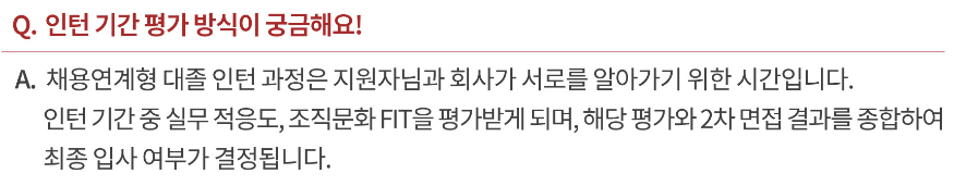 역으로 인턴 경험을 통해 이 회사에 대해 파악할 수 있는 기회가 될 수 있으며 청주공장, 울산공장에서 미리 생활해보고 마음에 들지 않으면 입사를 스스로 결정하지 않아도 된다는 장점도 있음. 인턴 과정은 지원자와 회사가 서로를 알아가기 위한 시간 이라는 표현이 마음에 듬.