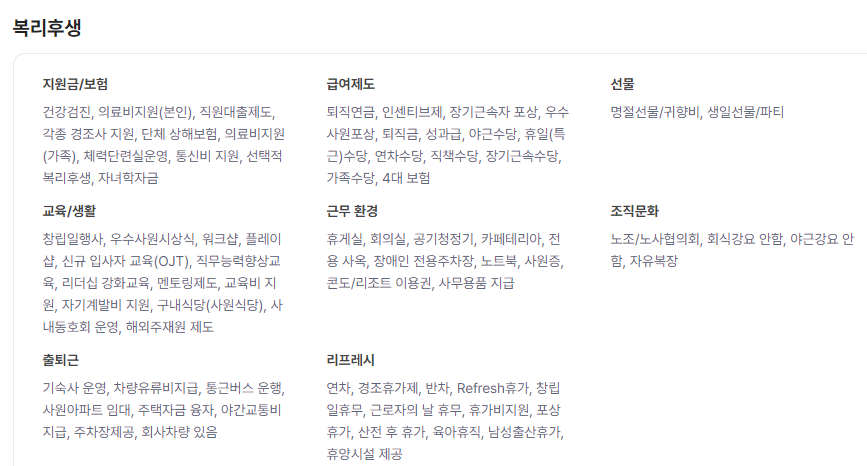 한화그룹 계열사이기 때문에 복리후생은 한화그룹을 따라감.