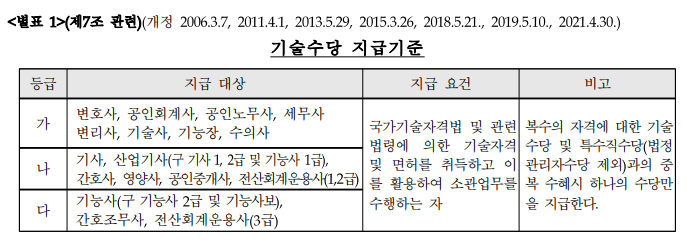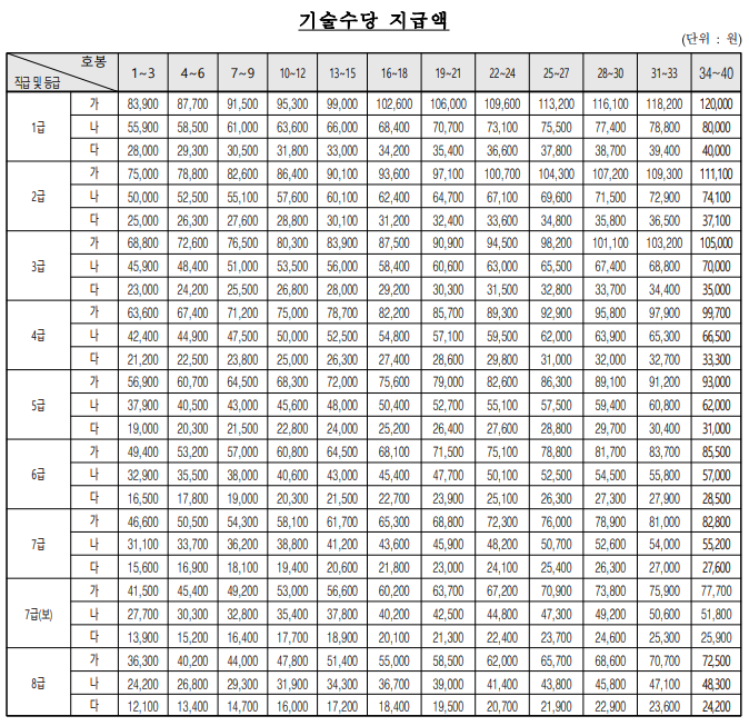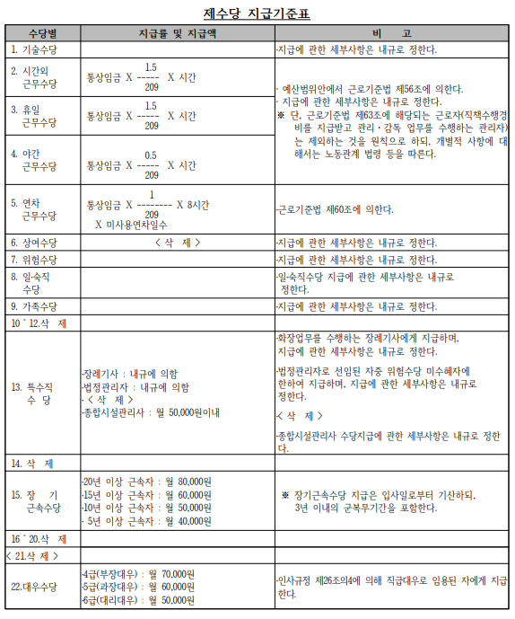 ㅇ기술수당 외 위험수당, 특수직수당 등은 아래 링크(보수규정시행내규) 참조바람