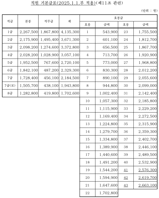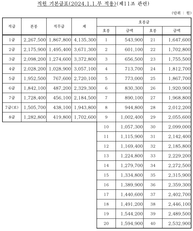 - 아래 자료는 홈페이지에 공개된 서울시설공단(서시공) 보수규정 중 직원 기본급표임.