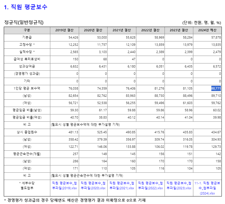 - 1인당 평균 보수액 : 8,077만원 (ALIO 공시, 2024년 6월)