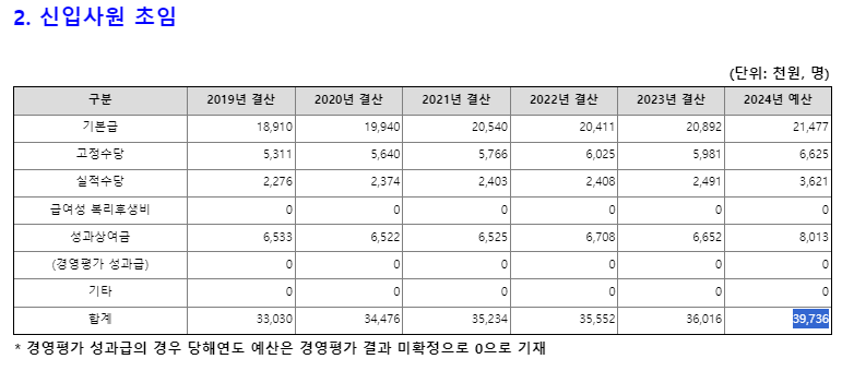 - 신입사원 초임 : 3,973만원 (ALIO 공시, 2024년 6월)
