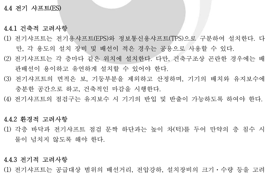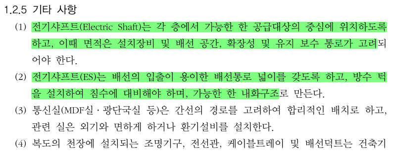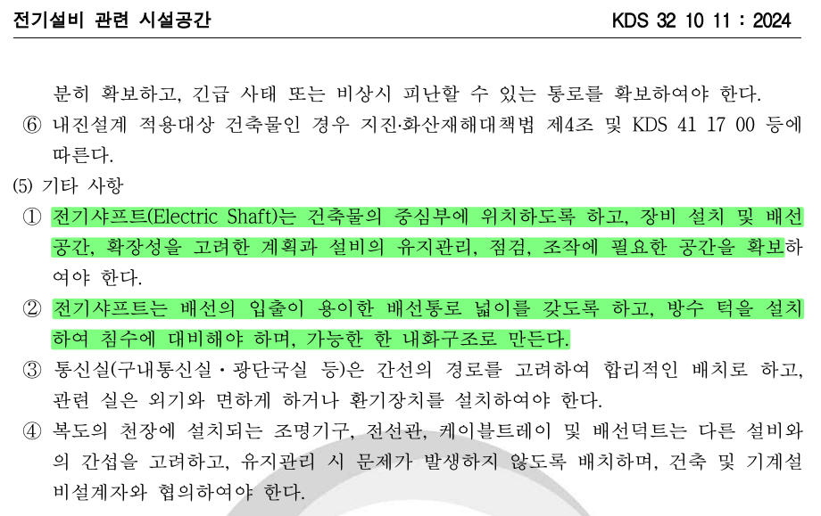 ㅇ 전기설비 관련 시설 공간(KDS) 기준 전문