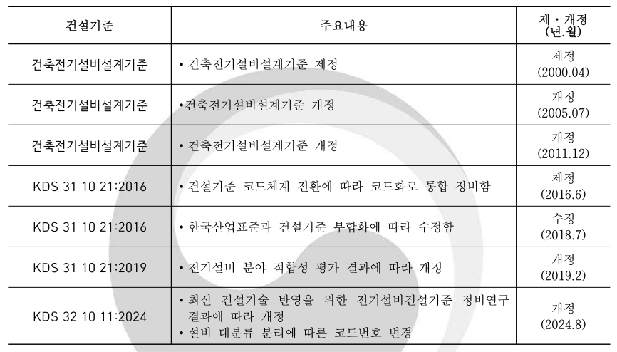 ㅇKDS : 과거 건축전기설비설계기준에서 건설기준 코드체계 전환에 따라 코드화로 통합 정비(2016.6)