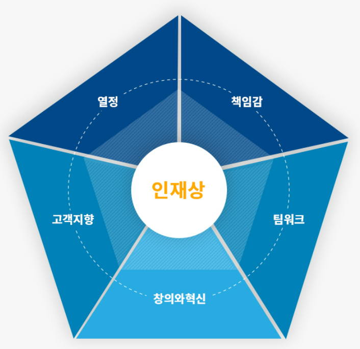 ㅇ열정, 책임감, 팀워크, 창의와 혁신, 고객지향