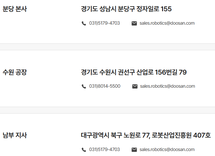 - 남부 지사 : 대구광역시 북구 노원로 77, 로봇산업진흥원 407호