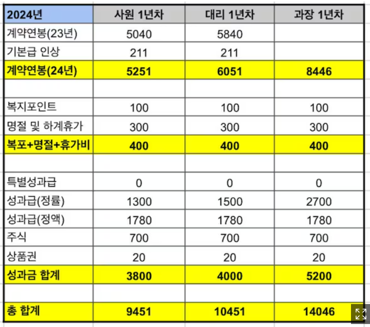 G2 매니저(대리급) : 약 1.0~1.1억