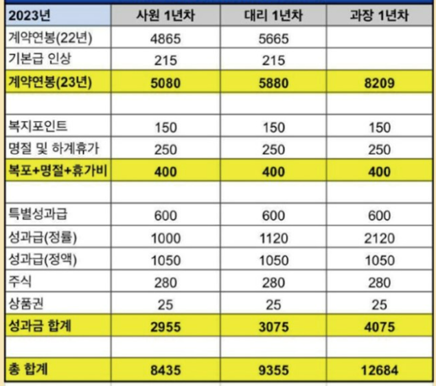 G3 책임매니저(과장급) : 약 1.3~1.5억