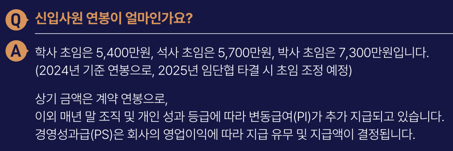: 2024년 최대 실적에도 불구하고 성과급이 기본급의 105%정도만 나왔음