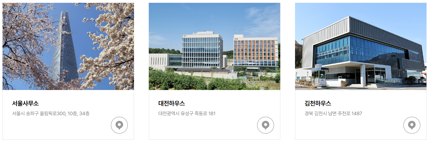 : 용인하우스(본사), 판교하우스, 판교연구소, 서울사무소, 대전하우스, 김천하우스, 구미하우스, 진해하우스, 진해사무소, 진주사무소 등