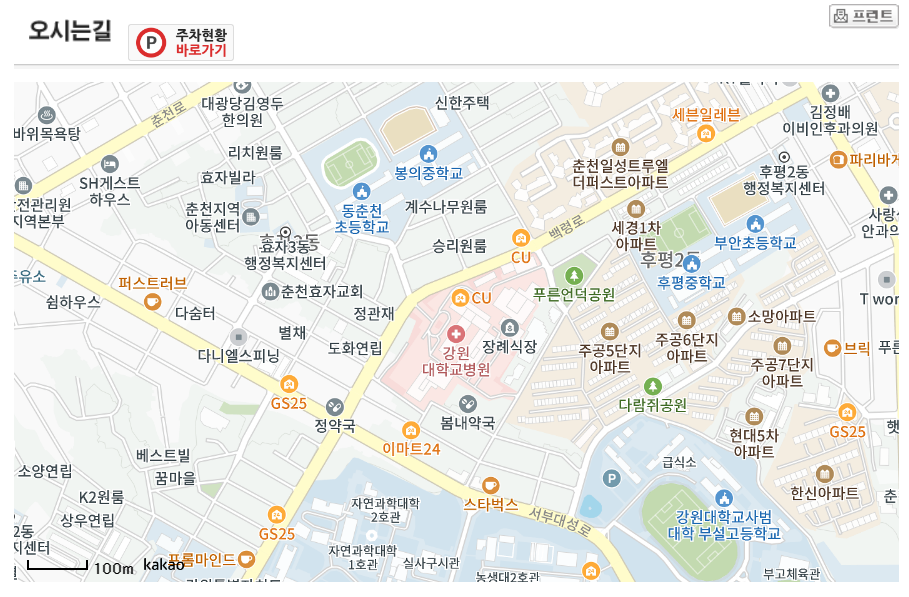 : 강원특별자치도 춘천시 백령로 156 (구:효자3동 17-1) 강원대학교병원