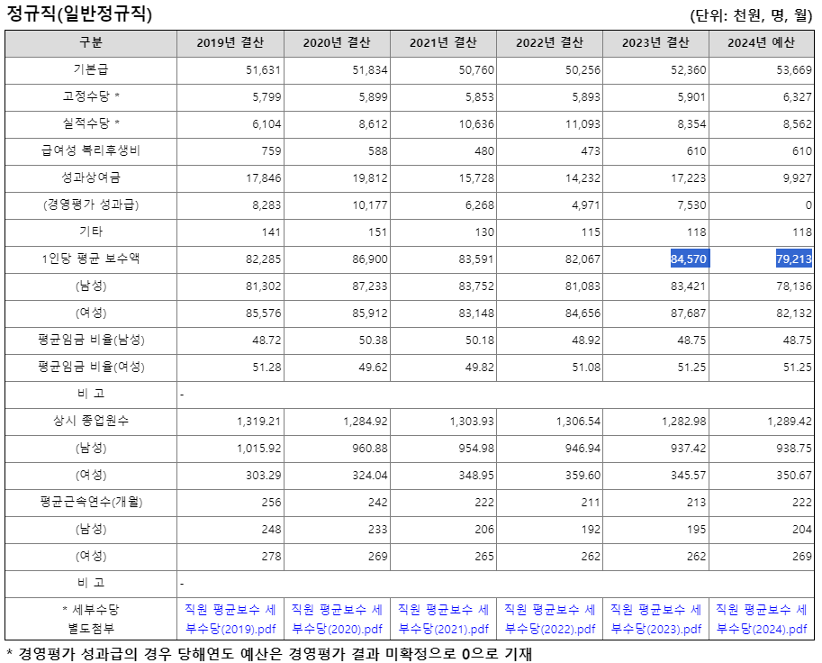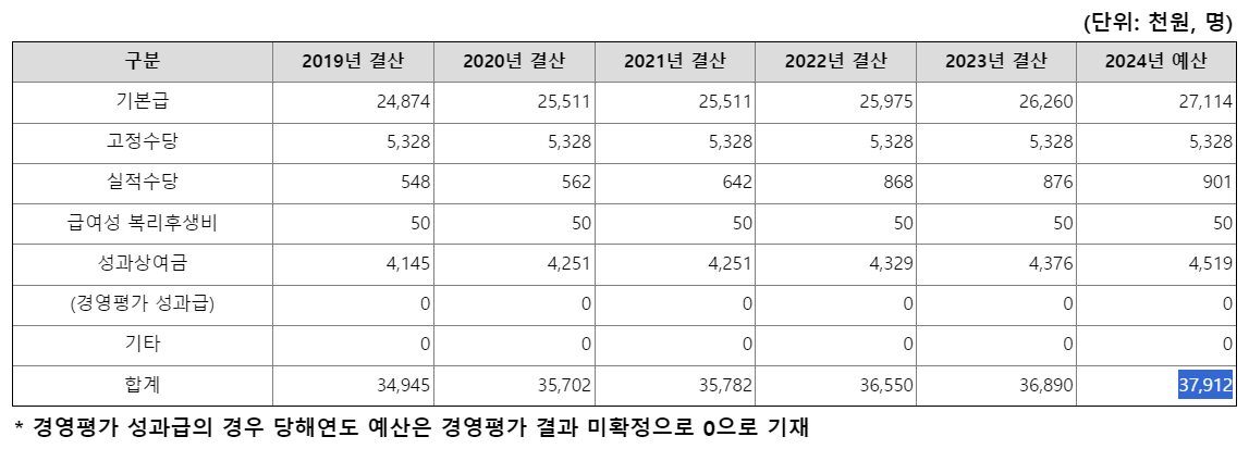 : 2024년 - 7,921만원(경영평가 성과급 미포함)