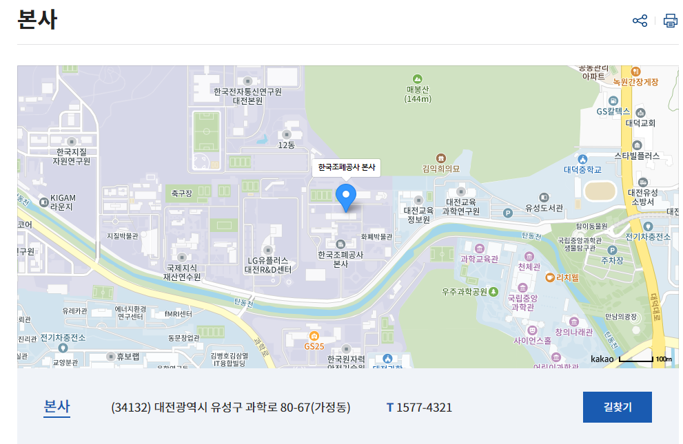 ㅇ본사, 기술연구원 : (34132) 대전광역시 유성구 과학로 80-67(가정동)